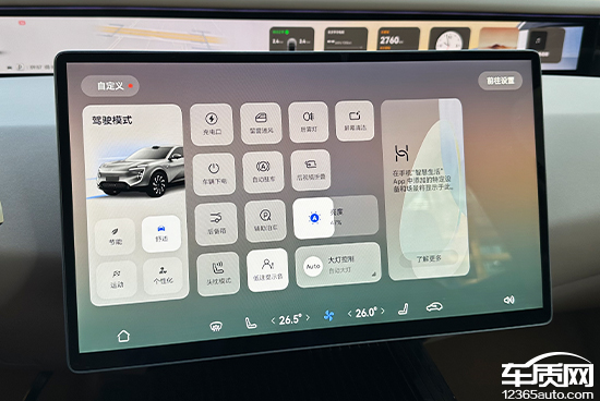 评测车配备15.6英寸悬浮式中控屏,分辨率为2K,画面显示非常清晰,视觉观感出色。硬件层面,虽然未公布车机芯片型号,但实测系统运行流畅,无论是打开车辆设置或是启动APP等均未出现卡顿的情况。值得一提的是,评测车配备了一块35.4英寸全液晶仪表盘,官方称之为全景远端屏,分辨率达到4K,显示效果颇为惊艳。并且全液晶仪表盘呈现的内容也十分丰富,用户还可在中控屏中根据需求进行设置。