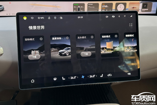 评测车配备360度全景影像以及透明底盘/540°影像,支持多角度显示以及3D视图。实测来看,画面清晰且无畸变。并且影像画面内还带有可随动的倒车辅助线,能够为驾驶员提供参考。值得一提的是,评测车还配备了9种智能场景模式,根据不同的模式,车辆会自动开启空调、调整座椅、播放对应音乐等,十分智能。