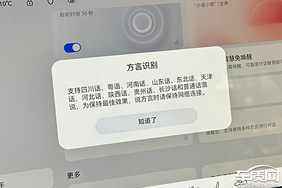 语音交互方面,评测车支持四区域语音唤醒识别、语音免唤醒词、语音连续识别以及可见即可说等主流功能。得益于HarmonyOS系统,小艺语音助手的使用感受与手机端并无二致,默认唤醒词为“小艺、小艺”,并支持自定义唤醒词以及应答语。此外,智能语音系统还支持四川话、粤语、河南话等方言,可满足不同地区用户使用需求。