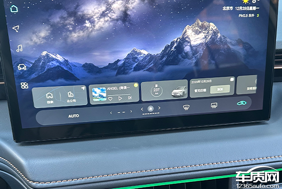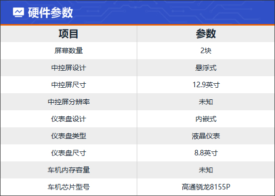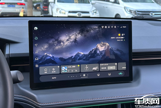 评测车搭载12.9英寸悬浮式中控屏,虽然没有公布具体分辨率,但实际显示效果清晰细腻,界面设计简约美观。车机搭载了高通骁龙8155P车规级芯片,系统流畅度表现出色,实测过程中并未出现卡顿情况。同时,评测车还配备了8.8英寸液晶仪表,分辨率同样不错,可直观查看车辆相关信息。