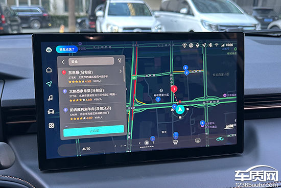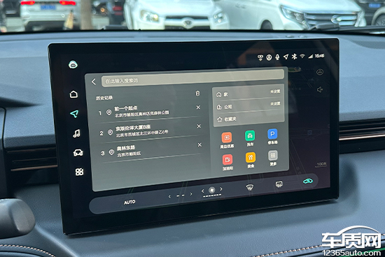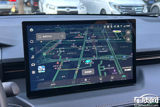 评测车搭载四维图新地图,导航界面十分简洁,常用的目的地检索以及快捷导航功能按键均位于屏幕左上角区域,便于驾驶员操作。此外,导航还支持组队出行、预约行程、位置分享等功能,颇为实用。