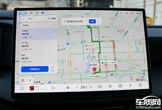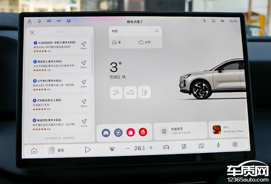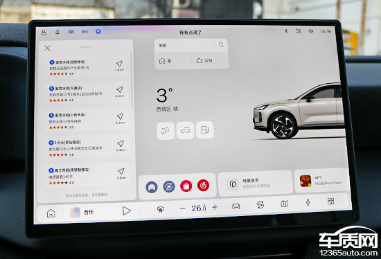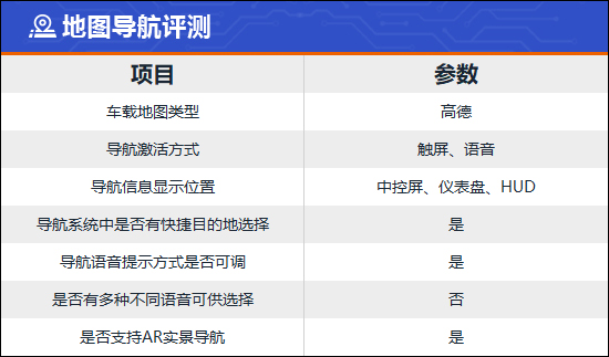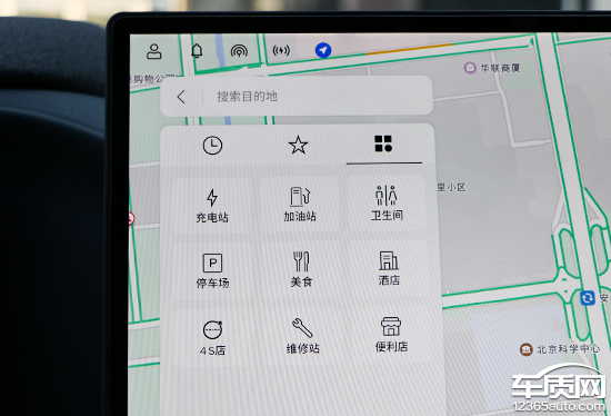评测车内置高德地图,搜索栏位于左上角,支持多种输入方式。此外,系统内还提供了丰富的快捷目的地选择,包括充电站、加油站、停车场以及4S店等,完全能够满足日常使用所需。