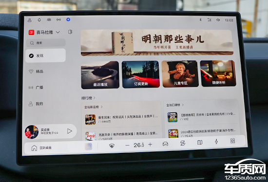 多媒体部分,评测车提供网络广播功能,喜马拉雅和云听应用基本能够满足日常使用所需。除此之外,系统内安装的其他影音娱乐类应用也相当丰富,包括腾讯视频、爱奇艺以及网易云音乐等。