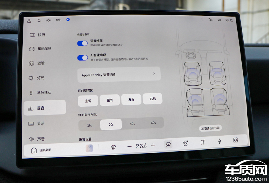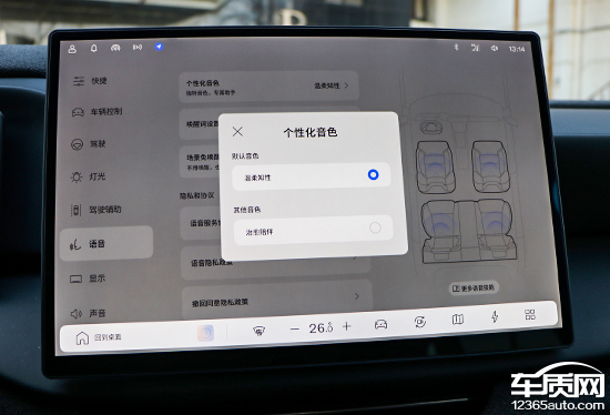 语音交互方面,评测车支持语音免唤醒词、四区域唤醒识别、连续识别以及可见即可说,功能性表现可圈可点。系统内置AI智能助理,基于大语言模型,支持更自然的闲聊对话和百科问答。个性化音色提供两种选择,包括“温柔知性”和“治愈陪伴”。