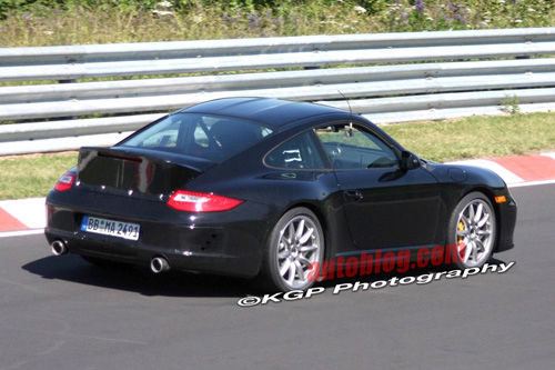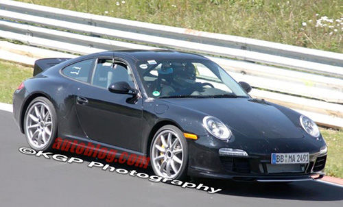 虽然每一代保时捷911虽然都保留着传统的造型,但是每一代都会有所更新,下一代911自然也不例外。 这是在纽博格林赛道抓拍到的最新一代保时捷911的原型车,它的车顶和尾部值得我们的注意。仔细观察车顶你将能够发现车顶采用了双拱式的造型,很像F1红牛赛车的前鼻锥造型,不过不是很明显。同时车尾还有一个不大不小的尾翼并带有一个额外的通风口。再仔细观察,你将会发现后挡风玻璃的根部其实也是一个进风口,这可能可以给水平对置的六缸引擎送去额外的空气吧,并起到一定的空气动力学效应。如果之前的报道是可靠的话,我们预计下一代保时捷911将会在2010年首发,我们也不排除它在9月法兰克福车展提前亮相的可能。