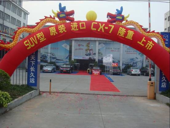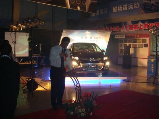 东莞长久马自达于11月26日晚7:30在展厅为CX-7举行了隆重的上市活动。当晚,来宾和准车主们汇聚一堂,在烛光灯下一边享受丰盛果点和烧烤美味,一边欣赏主角CX-7的超凡魅力。一汽马自达长久店总经理吴雪瑞亲致欢迎辞,随后与长久第一位CX-7车主陈先生共同为新车揭幕并开启香槟祝酒,最让人感动的是当主持人宣布马自达忠实车主陈先生放弃自己的生日宴会也出席当晚的活动仪式时,长久车行为其举行了简单而郑重的切生日蛋糕仪式并赠送礼物,现场所有的来宾也有幸一起分享了他的快乐和生日蛋糕,整个活动现场气氛温馨而热烈。