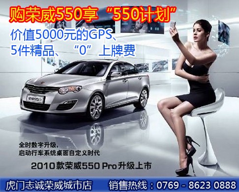 记者近日从虎门志诚车行了解到,现在购买荣威550 2010款,可享受“550计划”,即购车送价值5000元的GPS、5件精品、“0”上牌费。