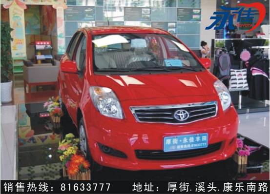 据广汽丰田永佳厚街店销售部陈经理现在店来购雅力士即可享受一元包牌和店庆特惠价,一定会让广大的雅迷们满意不已。在11月20号—12月26号定车的客户还可赢取42寸液晶电视,高级海尔空调,丰田折叠自行车等好礼。不仅如此,定购店庆指定车型更可获得888元十人份的客满堂全羊餐劵一张。来店详谈价格更优惠!咨询热线:81633777