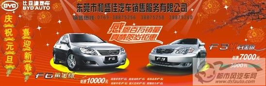 和盛佳比亚迪在新年里为迎接比亚迪S6上市,更在元旦期间推出30台F6