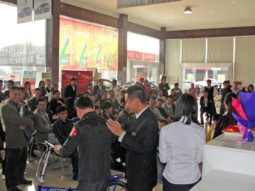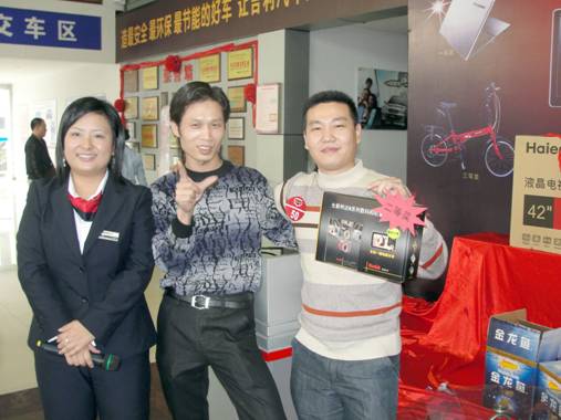 12月19日,50位帝豪EC7新车主齐聚新华利帝豪寮步4S店,参加了由东莞市新华利汽车贸易有限公司举办的“品质帝豪,有礼更好”抽奖活动,本次活动的奖品丰富,而且还很超值。特等奖1名,抽中者将获得42英寸液晶电视机一台。一等奖1名,奖品为名牌笔记本电脑一台;二等奖3名,奖品是数码相机一台;三等奖10名,可获赠户外折叠自行车一辆;鼓励奖35名,抽中者可获名牌纯正花生油一瓶。