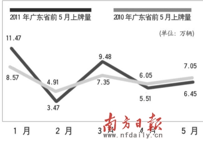 记者从刚刚获得的公安部上牌数据中得知,广东省5月新车上牌量64543辆,截止日前,今年累计新车上牌量36.64万辆。虽然4、5月份上牌数据中存在部分区域数据缺失的情况,但并不会影响到新车上牌量的整体走势。继4月销量同比下滑之后,5月车市再现颓势。如果4月上牌数据还不足以让人们相信车市拐点已经到来的话,5月份上牌量的再次下滑,则验证车市遇冷的客观事实。
