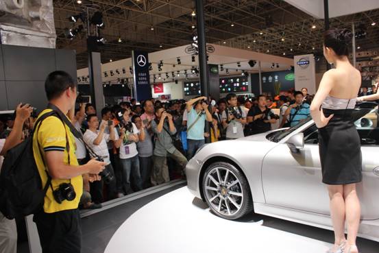 今日展会现场,更有多款新车发布,超级跑车保时捷Boxster、路虎2013揽胜运动版等近14款新车的炫目上市吸引了大家的极大关注。