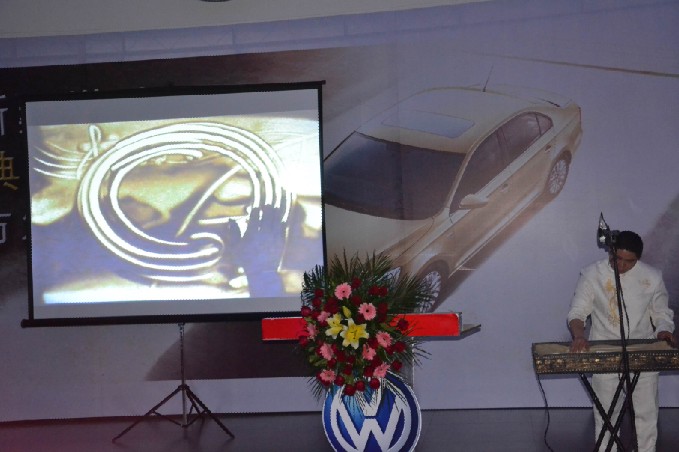 沙画表演演绎有着29年历史的传奇车型桑塔纳