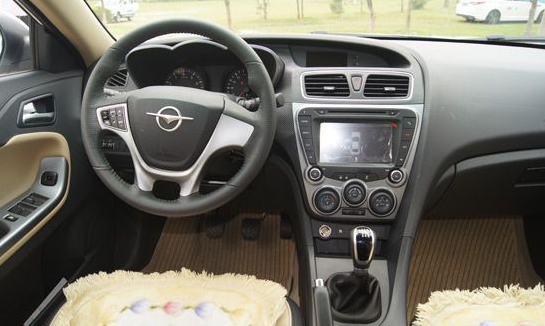 内饰方面,海马S5采用橙色和黑色混搭的欧洲流行配色方案。中控台所用的钢琴漆面经过精心处理,不会留下手印和指纹,难能可贵。中控台中部空调出风口以及控制区域采用了钢琴烤漆工艺来营造年轻时尚的感觉。中控台整体采用的是V字形排布,不落俗套。 一体机屏幕被安放在中控台顶部,这是一个7寸的触摸显示屏。这个触摸屏可视角度较高,触摸响应较快,使用感觉相当不错。用户可以通过蓝牙把手机连接到一体机上,播放音乐及拨打电话,声音会通过车内的喇叭播放出来。海马S5高配版带有360°全景影像功能。在20km/h的速度以下,通过打转向灯、挂倒档以及按中控台的BVS按钮都可以启动海马S5的全景影像功能。启动影像系统后,中控台的屏幕左侧会显示响应摄像头的图像,右侧会显示全景合成图像。