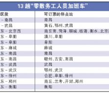 首先要提醒大家的是,这13趟车都是座位票没有卧铺,节前发车日期为明年1月24日~2月6日(即农历十二月十五至廿八)。