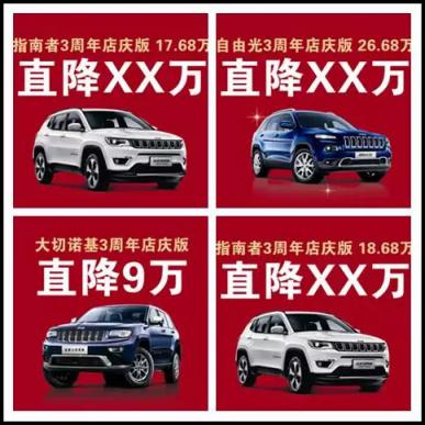 活动车型:全系(进口Jeep:大切诺基、牧马人;广菲克Jeep:自由侠、自由光、指南者;进口克莱斯勒:300C、大捷龙;进口道奇:酷威)