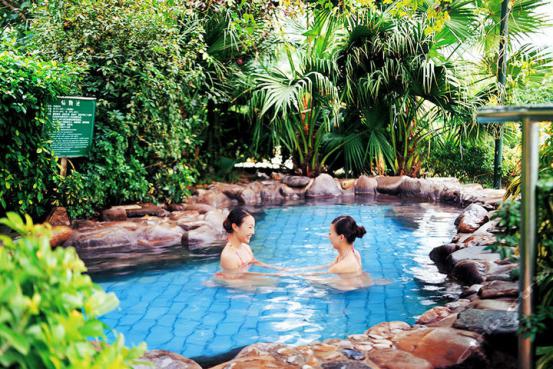 温泉泉源引自100多米地底深处,水温64度,水质无色无味,透明洁净,经岩层过滤为无污染的泉脉,富含二十多种无放射性的微量元素,其中中碳酸根含量为121.75毫克、升,俗称"沸泉",对人体组织有很强的活性作用。时常沐浴可以美白肌肤活化细胞,同时对糖尿病,心脑血管疾病。神经管能症和慢性风湿病等不良症状皆有显著疗效。