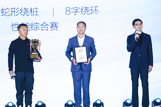【中汽信科王亚飞部长为星途凌云产品总监杜文建、CCPC冠军车手陶鹏飞颁奖(从右至左)】