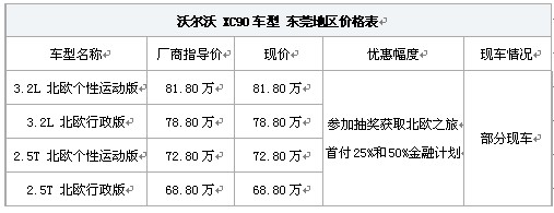期待已久的沃尔沃新款XC90北欧版现已登陆东莞世沃4S店,新车的推出为消费者提供了更多的豪华车选择,沃尔沃汽车公司还针对XC90推出2套金融购车计划,首付分别为25%和50%。