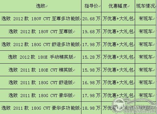 编者从广汽丰田永佳厚街店处获悉,新年EZ逸致系列均出现较大的优惠幅度,全系L现车相对充裕,颜色以黑色和白色为主。据销售人员介绍,凡在指定时间内购买逸致车型,均可获赠万元现金优惠还有机会赢取金龙献宝。如果对该车感兴趣的朋友,不妨致拨打:81633777。
