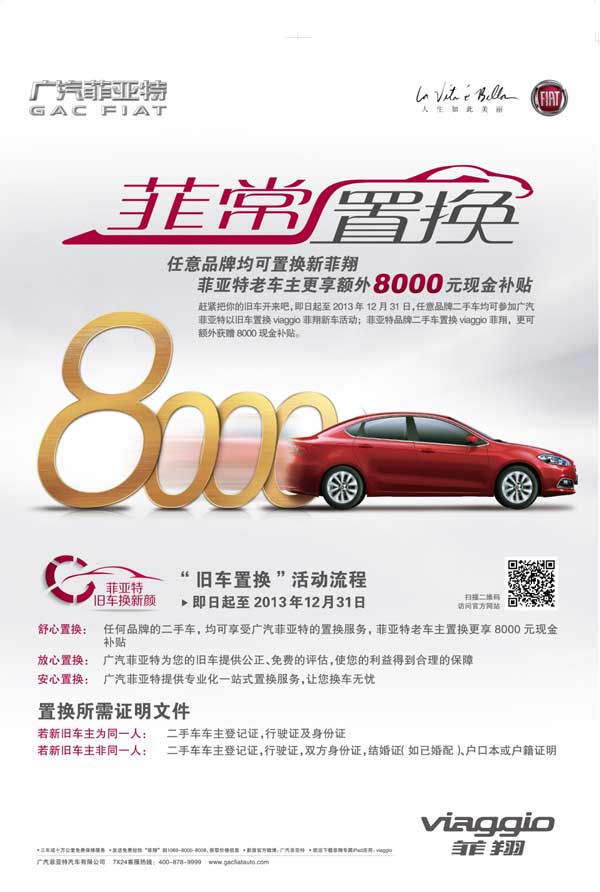 舒心置换:凡菲亚特老车主置换任一款菲翔即可享受8000元置换补贴