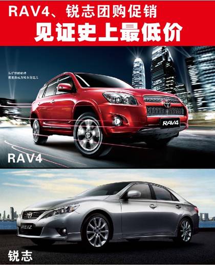 贺东莞长安百力恒丰田圆满完成厂家一季度目标,现厂家额外奖励百台RAV4、锐志现车给我店,为感谢新老客户长期以来的大力支持与厚爱,老板决定将所奖励车型不计成本低价特卖。百力恒丰田现诚邀您参加4月7日下午3点RAV4、锐志闭馆团购会专场,让您见证史上最低价奇迹,只要您来,我们就敢卖。喜欢丰田车的朋友,如此好机会实在不容错过!赶紧拿起你的手机拨打我们的团购电话加入吧!仅限50名,团购热线:0769-81601266