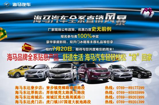 我们相约7月20日,海马汽车全系直销风暴(广东站),史上空前,震撼来袭”!