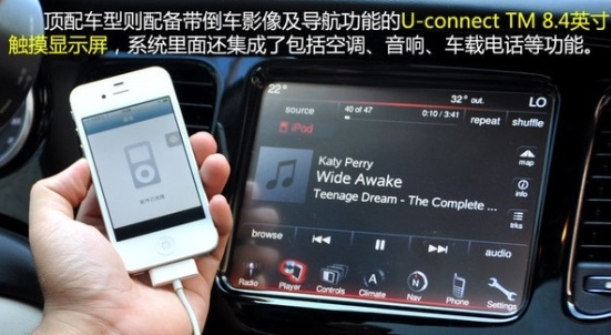 内饰无论是设计还是做工都很不错,中控台线条比较流畅,采用了非对称的设计,简洁的设计涵盖了一应俱全的功能。双盘仪表色彩丰富,视觉效果醒目,像行车电脑、水温以及油表都有彩色显示,看上去动感而时尚。高配车型里,配备了带倒车影像及导航功能的U-connect TM 8.4英寸触摸显示屏,系统里面还集成了包括空调、音响、车载电话等多方面的功能。至于播放音源方面,菲翔Viaggio也充分考虑到时下年轻群体的需求,全系列车型都标配CD、AUX输入和支持IPOD播放的USB接口。