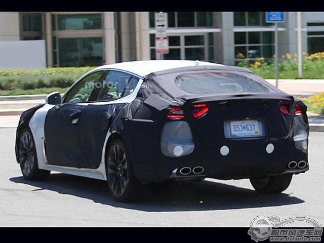 外观方面,新车借鉴起亚GT概念车采用四门轿跑设计风格,虽然前脸被重度伪装,但我们隐约能够观察到新车采用了虎啸式设计,但前格栅的形状有所调整。与概念车相同,前脸下方同样采用了经空气动力学优化的导风口。尾部方面,新车尾部采用溜背式风格,配备双边共四出的尾排设计。另外,新车还配有前后各四颗泊车雷达。