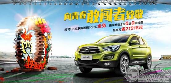 此外,海马汽车还推出了“向青春敢闯者致敬 海马S5三免诚意金融礼遇”,使海马S5优质优价属性进一步延展。消费者凡购买海马S5任意一款车型,均能享受购置税100%减免,贷款两年“0利率0手续费”的优惠政策,购车最高立省21518元。