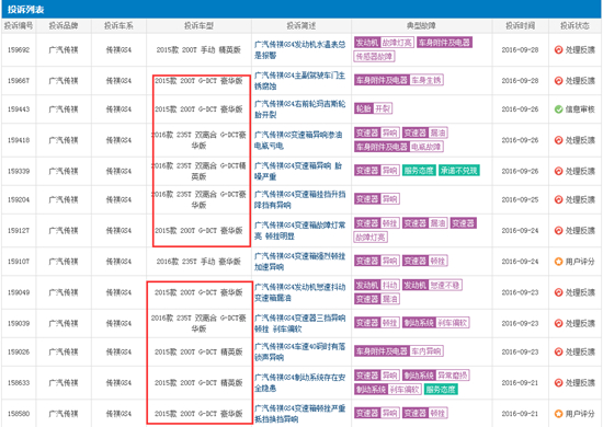 作为近年来SUV市场上热销的一款产品,广汽传祺GS4却存在较为严重的质量问题。特别是双离合变速器,更是传祺GS4的软肋。随着传祺GS4销量的节节攀升,传祺GS4质量问题的投诉也在不断增加。打开汽车质量投诉网,关于传祺GS4双离合器异响、漏油、顿挫的投诉比比皆是;搜索QQ群,500人以上的GS4维权群也不在少数。调查发现,传祺GS4 发动机与双离合变速器的匹配颇成问题,是投诉的重灾区。