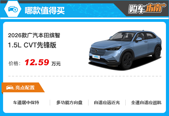 综合来看,如果您正在关注2026款广汽本田缤智,那么1.5L CVT先锋版在购买时可优先考虑。