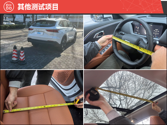 此外,我们还针对驻车雷达、灯光/视野、操控系统、轮胎、天窗、座椅、后备厢进行了测试。经过测试发现,后排座椅靠背调节角度大,后排为纯平地板,并且采用可开启全景天窗,后备厢容积表现出色,乘坐舒适性和空间表现值得肯定。此外,评测车配备了固铂EVOLUTION CTT轮胎,主打静音、舒适。略显不足的是,其前方视野盲区相比同级别车型偏大,主驾驶座椅调节行程也偏短。