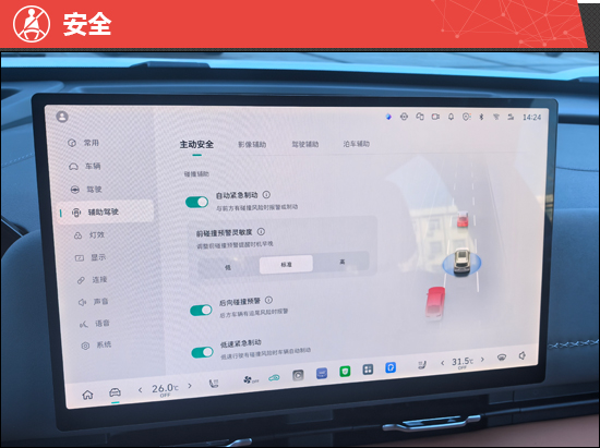 14.6英寸中控屏内置全新的Coffee OS 3智能座舱系统,支持多种手机互联方式和双区域语音唤醒识别等功能,智能交互体验出众。测试过程中未出现卡滞现象,对于语音指令的反应速度较快且识别精准。